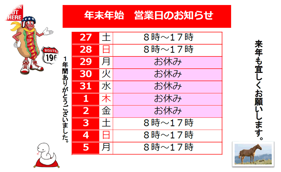 1年間ありがとうございました。来年もどうかよろしくお願いします。
